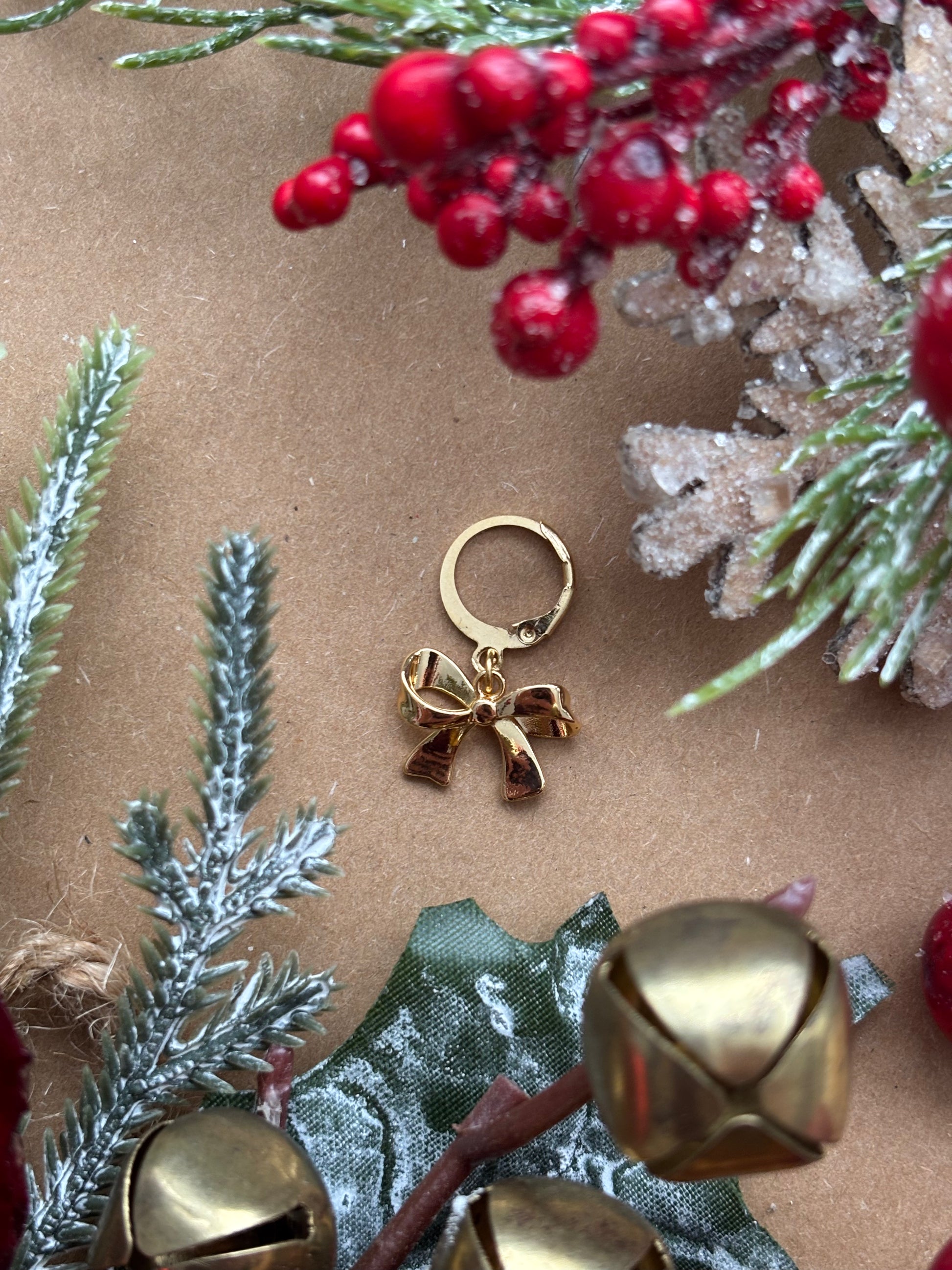 Golden bow stitch marker/ progress keeper