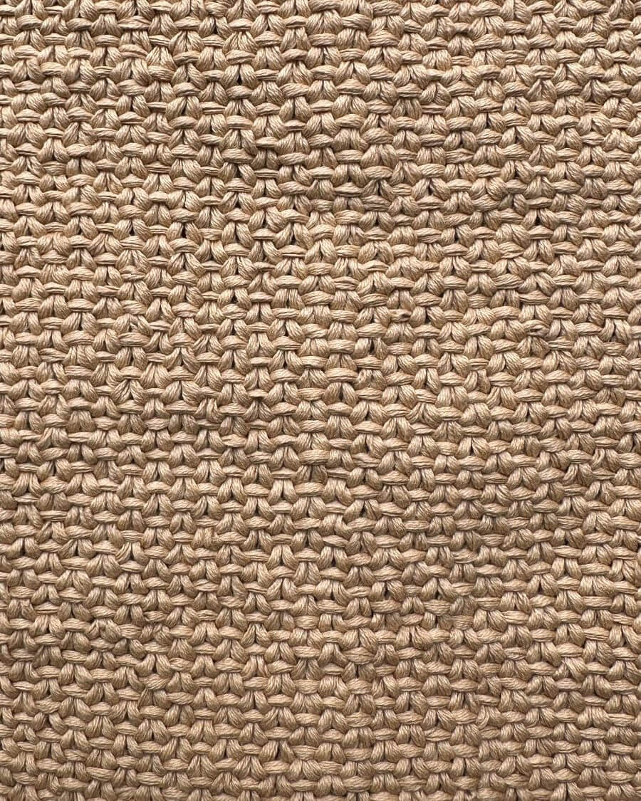 Materials: 50 (100) g Japansk Bomuld by Isager Yarn (50 g = 315 m [344 yds]) (worked with three strands of yarn held together) or 100 (150) g Crealino by Lang Yarns (50 g = 165 m [180 yds]) (worked with three strands of yarn held together)