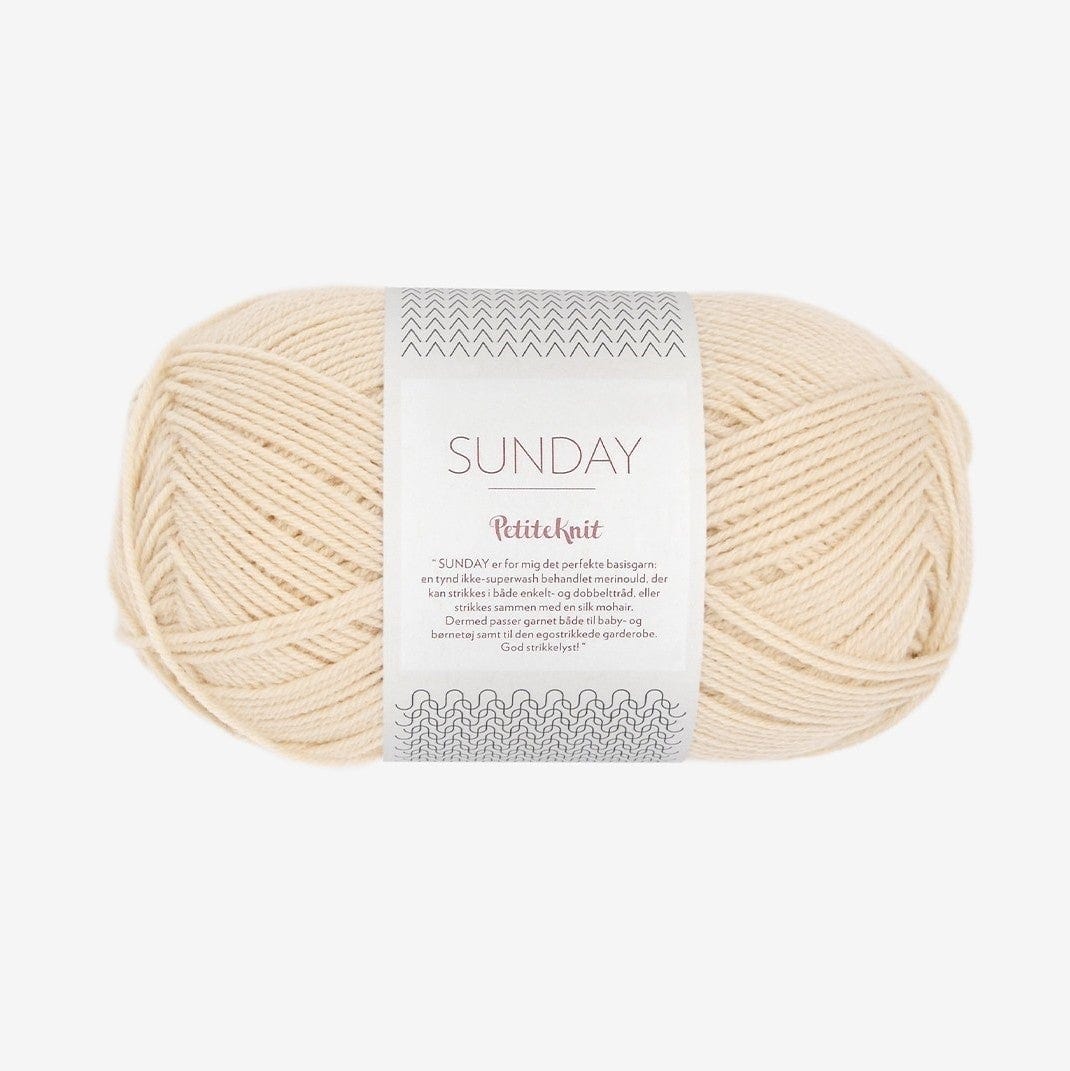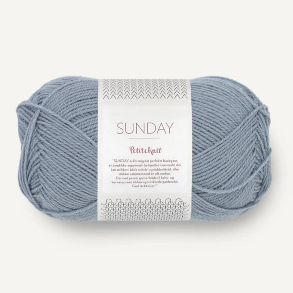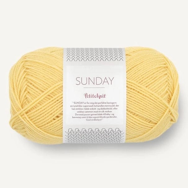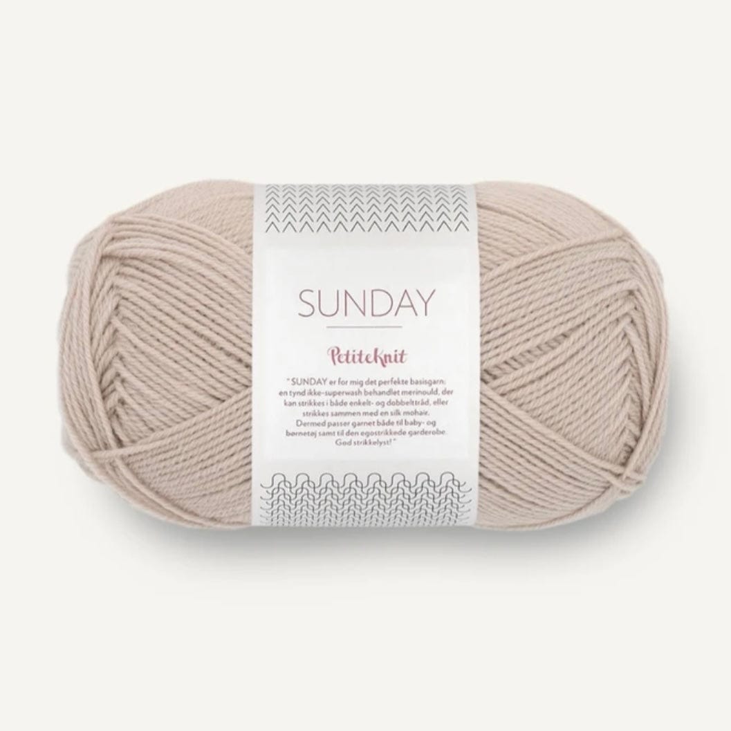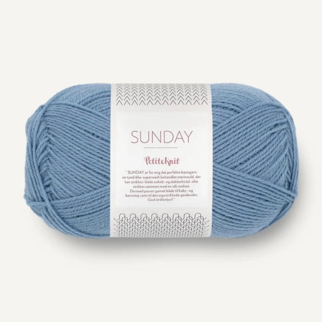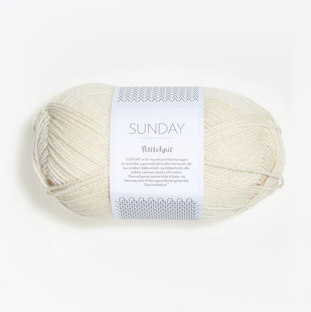 If you love the designer Petite Knit‘s universe, or more generally the Nordic aesthetic, you will love Sandnes Garn’s Sunday too! This yarn, created in collaboration with Petite Knit, is an excellent staple to have in your stash! Spun from a 100% merino non superwash wool, Sandnes also guarantees that this yarn comes from farms that do not practice mulesing*. Thanks to its fine weight and good stitch definition, this yarn is excellent to knit delicate projects, whether complicated or not. You will love to knit shawls, baby clothes and accessories with it ! But you will also be able to knit easily with two strands, or to work it together with another yarn. In fact, that’s what Petite Knit often does, associating it with a strand of silk mohair, to create aerial and extra-soft garments. What you need to know about this yarn: