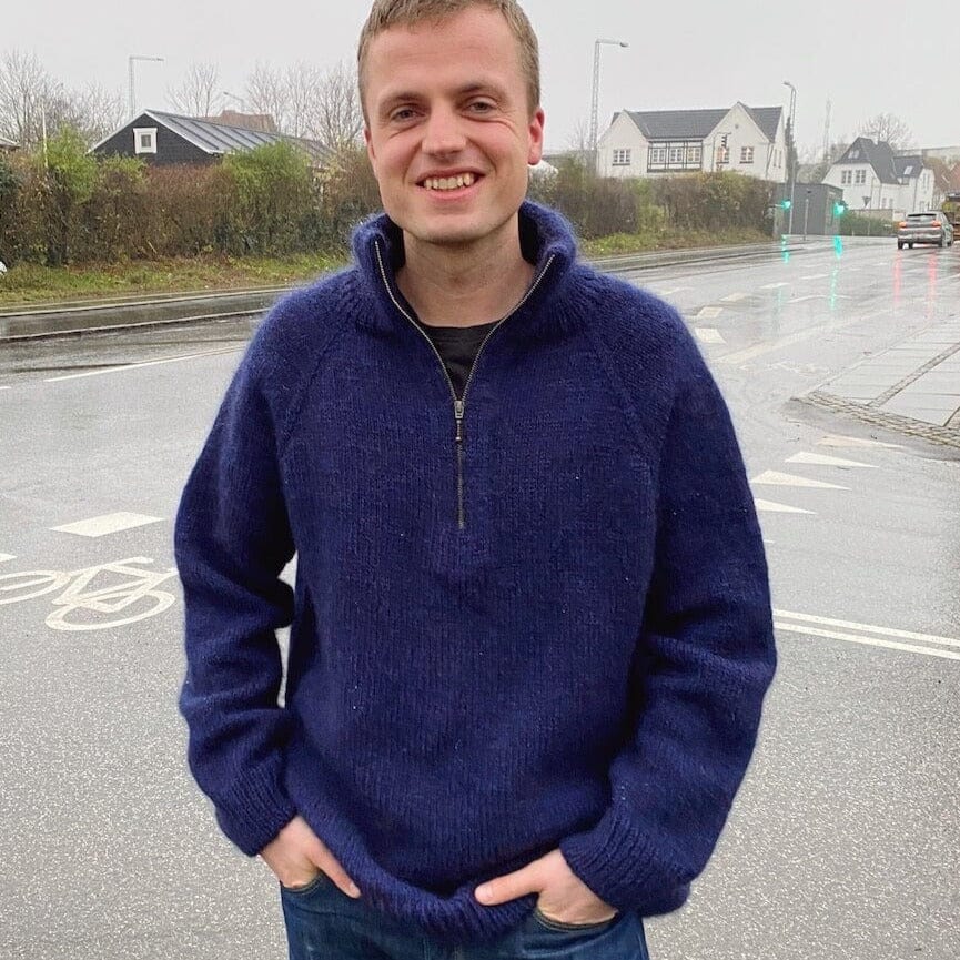 The Zipper Sweater - Man is worked from the top down. The collar is worked in rib, then folded double and knitted together. The yoke is worked with raglan increases, first back and forth on circular needles to create the slit for the zipper, then in the round on the circular needles. The body and the sleeves are worked in the round. Finally, a facing for the zipper is worked from resting stitches, so the zipper, after being sewn in, also looks presentable from the WS. The zipper is sewn in between the two layers of knitting – either by hand or on a sewing machine.